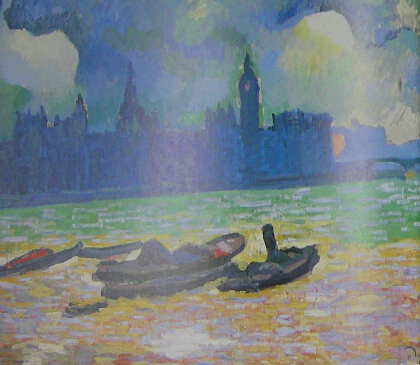 アンリ・マティスやモーリス・ドウ・ヴラマンクとともに.アンドレ・ドランは、フオーヴとして知られているフランスの画家たちのグルーブの指導的な代衰者であった。1905年とその翌年彼は、美術商アンボワーヴォラールの提案で口ンドンに旅し、ヴオラールのためにく夜の国会乙A小堂)も含め、多数のこ0)町の景観を描いた。