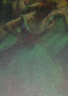 1870年代の客観的に写実された踊り子にくらべ後期の踊り子は,いっそう豊かに表現されている.踊り子たちはより小さな一場面においてより近くから.より主観的にとらえられている.色彩は強烈になり。補色―オレンジとブルー,赤と緑―の大きな塊が顕著になっている.画家はまた形態の要素にもいっそうのしを抱いていたようである.